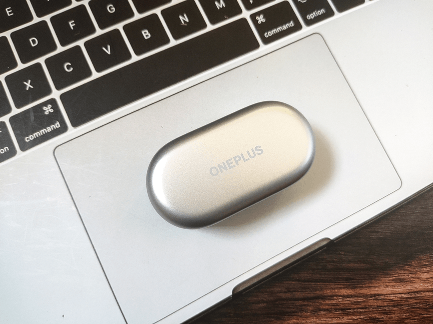 充電倉倉蓋采用磨砂霧面設計,中間“ONEPLUS”字樣略有點睛之筆的妙處,充電倉倉體和耳機耳柄融入了撒點材料,不論是耳機還是充電倉的手感都很不錯。