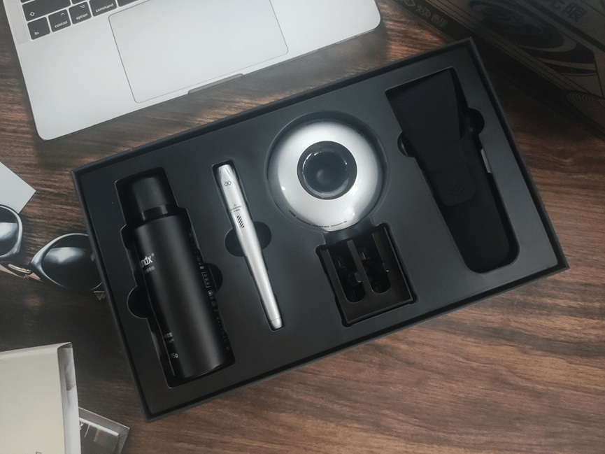 煥醒星洞小飛碟手動剃須刀采用了非常獨特的設計,設計靈感融合了星空、黑洞、飛碟、機甲、探索等元素和精神內核,將底座設計成飛碟的造型,且利用磁懸浮支撐技術,讓剃須刀屹立不倒,給人一種科技感十足的感覺。