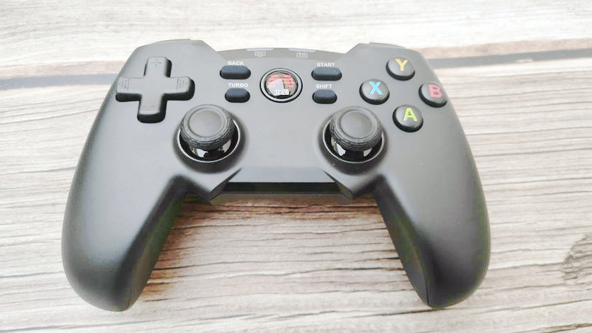 北通蝙蝠4整個表面除了了啞光處理外,除了在按鍵邊緣以及logo做了亮面處理。中間是產品的logo,在按鍵的上面分別是電視指示燈和電腦指示燈。整個布局非常的合理:十字鍵、左搖桿、右搖桿、 ABXY動作鍵,互動按鍵、啟動鍵,連發鍵、返回鍵以及上4個扳機鍵。